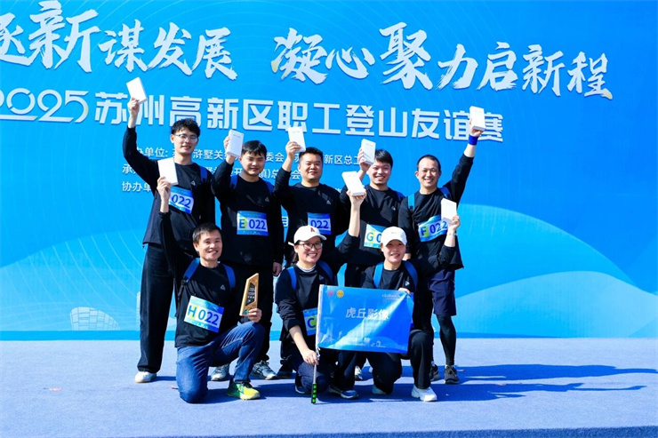 11月16日,苏州高新区总工会举办“攀高逐新谋发展,凝心聚力启新程”职工登山友谊赛,比赛在大阳山国家森林公园热烈展开,虎丘影像的8名队员奋勇争先,与40支参赛队伍一起力攀高峰,顺利完赛,获得“优胜奖”。